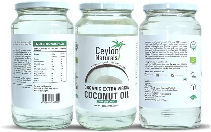 Product details of Ceylon Naturals Organic Extra Virgin Coconut Oil 1000ml / 500ml / 310ml / 200ml