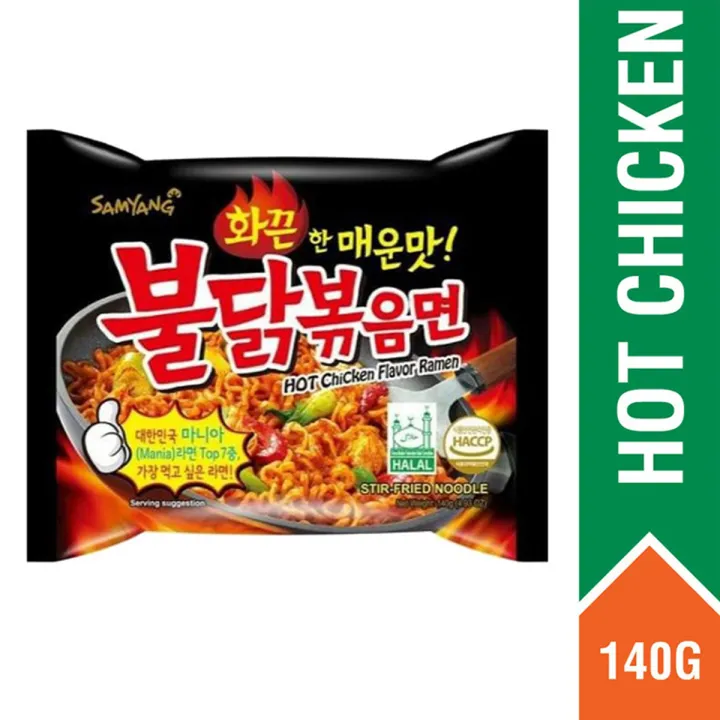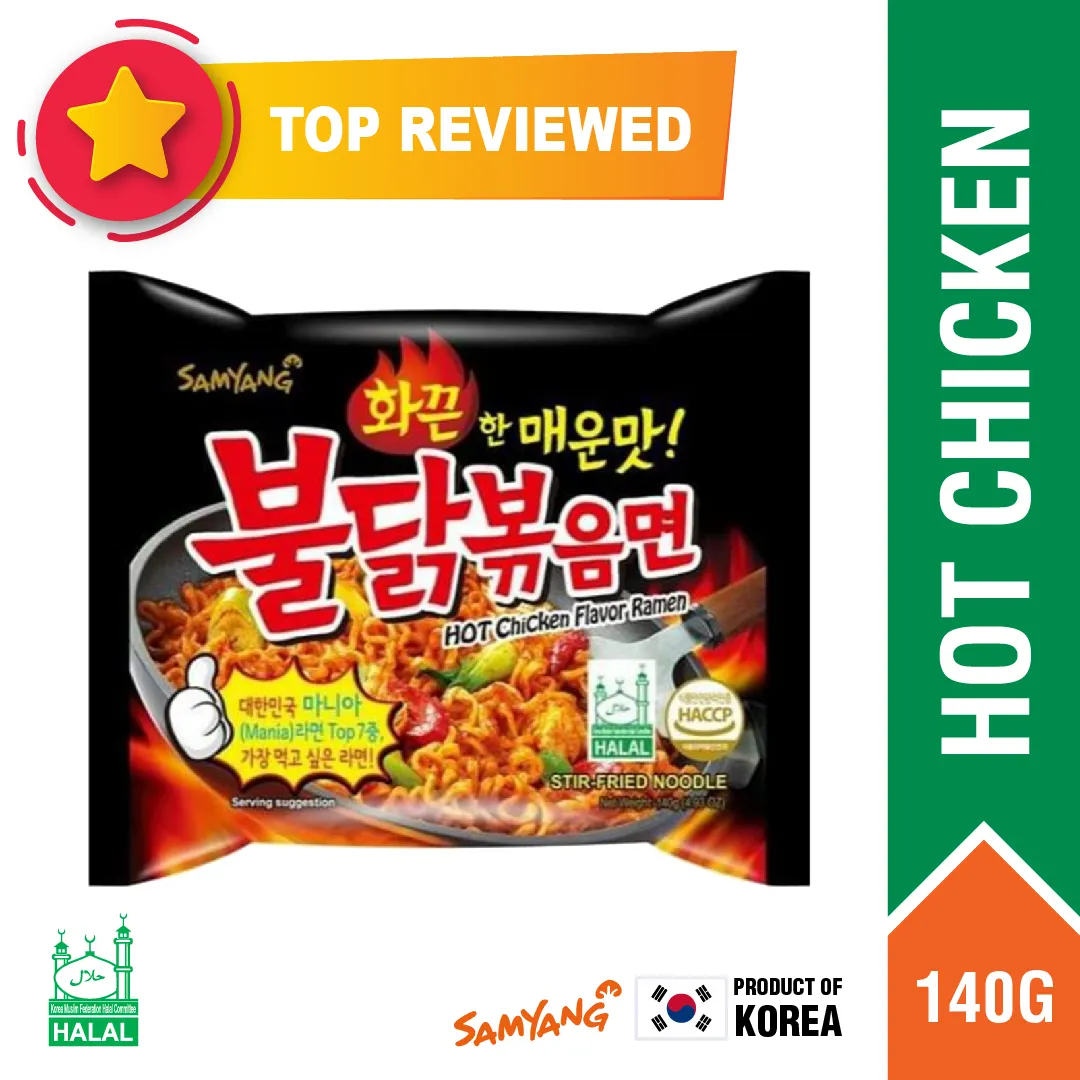 • Savor the authentic taste of Korea with our Halal Certified Hot Chicken-flavored ramen! Imported from Korea, each 140gm packet offers a delectable and spicy delight. Get ready to indulge in a flavorful journey with every single serving.